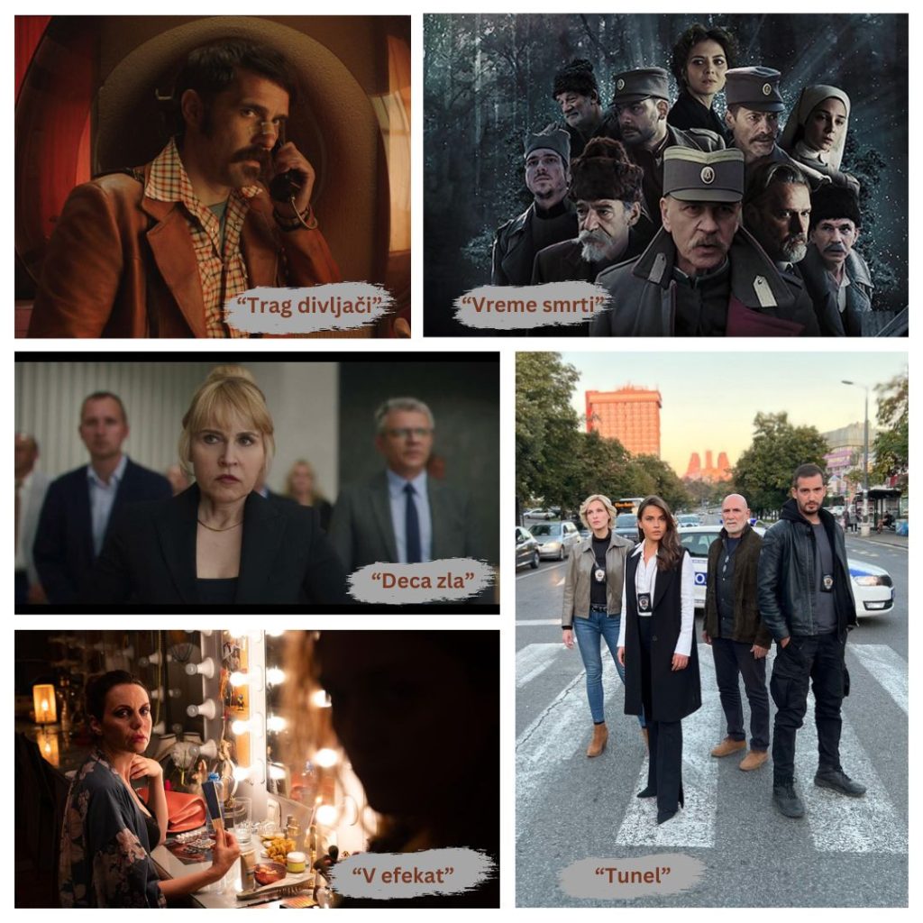 Za nagrade “Zlatna antena” u 13 kategorija nominovane su serije naših članova: “Tunel” (reditelj i scenarista Petar Ristovski, koscenarista Vladimir Ćosić), “V efekat” (reditelj Gordan Kičić i scenarista Đorđe Milosavljević), “Vreme smrti” (režija Ivan Živković, scenaristi Sanja Savić Milosavljević i Đorđe Milosavljević), “Deca zla” (režija Ivan Stefanović i Vladimir Tagić, scenaristi Katarina Mitrović i Bojan Vuletić,) i “Trag divljači” (režija Nenad Pavlović, koscenaristi Pavlović, Đorđe Milosavljević i Dimitrije Vojnov).